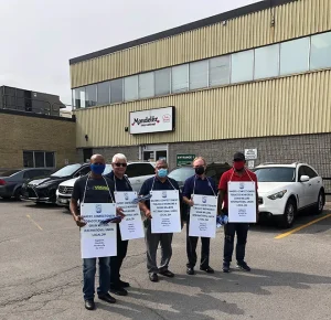 In the Fall of 2021, BCTGM Canadian Region International Vice President Ron Piercey and International Representative/Organizer Karl Walker accompanied members of Local 264 (Toronto, Ontario) for an informational picket outside the Mondelez facility in Toronto.